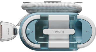 Philips-mattopesuri on kompakti ja helppo säilyttää, ja se sopii erinomaisesti mattojen, sohvien, patjojen ja auton istuimien puhdistukseen. Siinä on leveä harja, jolla voit peittää suuret alueet tehokkaasti. Lisäksi 3-in-1-suutin on suunniteltu poistamaan tahrat pehmeiltä pinnoilta.