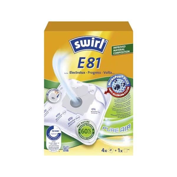 - Sopivuus: Electrolux, Progress och Volta-pölynimurit - Pakkauksessa: 4 pölypussia E81 ja 1 suodatin