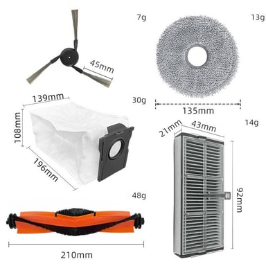 Kattava puhdistusratkaisu: Tämä kattava robotti-imurin lisävarustepaketti tarjoaa kaiken tarvittavan Dreame X40, X40 Pro, X40 Ultra ja S30 Pro Ultra -mallien optimaalisen puhdistustehon ylläpitämiseksi. Paketti sisältää kumiharjan, kahdeksan sivuharjaa, kuusi pölypussia, kolme suodatinta, neljä karkeaa moppia, neljä hienoa moppia, kolme komposiittimoppia ja puhdistusharjan. Osien säännöllinen vaihto varmistaa optimaalisen imutehon, tehokkaan lianpoiston ja puhtaamman kotiympäristön. Tämä paketti on suunniteltu pidentämään robotti-imurisi käyttöikää ja pitämään sen toiminnassa sujuvasti, tarjoten kustannustehokkaan ratkaisun tahrattoman kodin ylläpitämiseen. Yhteensopiva Dreame X40 -sarjan kanssa.