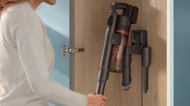 Johdoton Philips VC 7000 Series Aqua -varsi-imuri on tyylikäs ja tasapainoinen, ja se liukuu ketterästi kalusteiden ympäri sekä ahtaisiin paikkoihin. Digitaalinen näyttö kertoo tilanteen siivouksen aikana, ja seinäkiinnike säilyttää ja lataa laitteen siististi niin, että lisävarusteet ovat aina käden ulottuvilla.