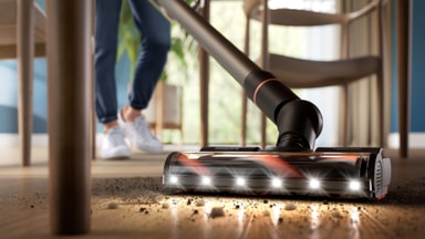 TriActive Smart LED -suulake säätää imutehoa automaattisesti lattiamateriaalin mukaan. Sisäänrakennetut LED-valot paljastavat piilossa olevan pölyn, jolloin likaa tarttuu mukaan jo yhdellä vedolla.
