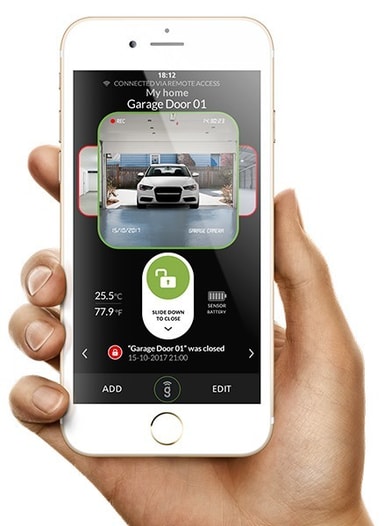Älykkään Gogogate 2 Ultimate -pakkauksen avulla voit avata tai lukita autotallisi oven etäältä useilla laitteilla, seurata live-videokuvaa portilta ja pysyä aina ajan tasalla sen käytöstä. Gogogate-älypuhelinsovelluksella voit oven hallinnan ja seurannan lisäksi integroida sen osaksi älykotiasi.
