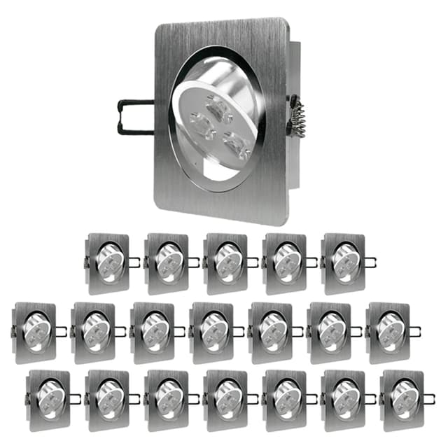 Toimituksen laajuus:20 x 3W viileänvalkoinen LED upotetut valonheittimet.Tekniset tiedot:Valovoima: 255 lumeniaVastaavuus halogeeniin: noin 25WTeho: 3WReikäleikkaus: 70 mmAsennussyvyys: noin 40 - 45 mmPaino: 134 gValaisimen mitat LxS: 95 x
