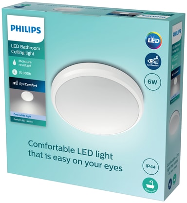 Philips Doris -kattovalaisimen avulla voit nostaa kylpyhuoneesi valaistuksen uudelle tasolle. Valaisimella luot rentouttavan ja kotoisan tunnelman lämpimän, valkoisen valon ja EyeComfort-teknologian ansiosta.Tutustu ominaisuuksiin