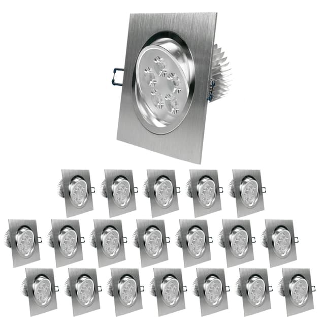Toimituksen laajuus:20 x 5W lämpimän valkoiset LED-valonheittimet.Tekniset tiedot:Valovoima: 334 lumeniaVastaavuus halogeeniin: noin 30WTeho: 5WReikäleikkaus: noin 95 mmAsennussyvyys: noin 65 - 70 mmPaino: noin 280 gValaisimen mitat LxS: no