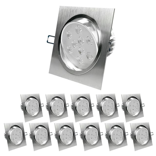 Toimituksen laajuus:12 x 9W viileän valkoinen LED upotetut valonheittimet.Tekniset tiedot:Valovoima: 676 lumeniaVastaavuus halogeeniin: noin 50WTeho: 9WReikäleikkaus: noin 120 mmAsennussyvyys: noin 7 - 80 mmPaino: 428 gValaisimen mitat LxS:
