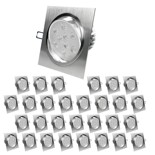 Toimituksen laajuus:30 x 9W lämpimän valkoinen LED upotetut valonheittimet.Tekniset tiedot:Valovoima: 668 lumeniaVastaavuus halogeeniin: noin 50WTeho: 9WReikäleikkaus: noin 120 mmAsennussyvyys: noin 75 - 80 mmPaino: 428 gValaisimen mitat LxTutustu ominaisuuksiin