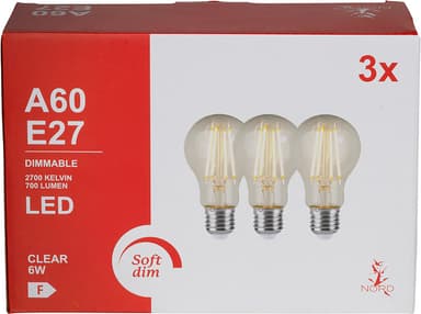 Nord A60 LED lamppu 6 W E27 (3 kpl/kirkas)