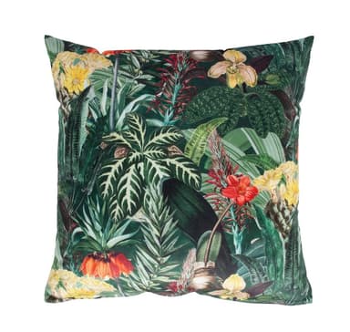 Tyyny HOLLY 45x45cm, trooppisia kasveja. Vetoketjulla, 100 % polyesteria, kangas 496.Tutustu ominaisuuksiin