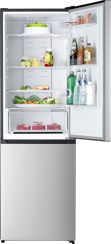 Jääkaappi: 207 litran tilavuuden ansiosta voit säilyttää kaikki elintarvikkeet yhdessä laitteessa. Jääkaapissa on kolme hyllyä sekä kaksi FreshZone-lokeroa, jotka ovat ihanteellisia hedelmien, vihannesten ja helposti pilaantuvien tuotteiden, kuten kalan, kananmunien tai lihan, säilytykseen.
