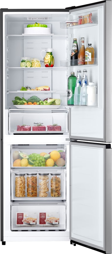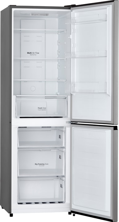 LG-jääkaappipakastin on luotettava laite, joka on varustettu kaikilla olennaisilla teknologioilla elintarvikkeiden turvallista säilytystä varten. MultiFlow tarjoaa luotettavaa jäähdytystä, kun taas NoFrost-teknologia poistaa pakastimeen kertyvän jään.Lisäksi FreshZone-lokeroiden ansiosta voit pitkittää elintarvikkeidesi säilyvyyttä.
