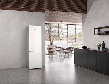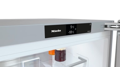 Miele-jääkaapin CleanSteel-takaseinä pitää jääkaapin sisälämpötilan sopivana ja jakaa kylmän tasaisesti.Takaseinään ei kerry tiivistynyttä vettä tai jäätä.