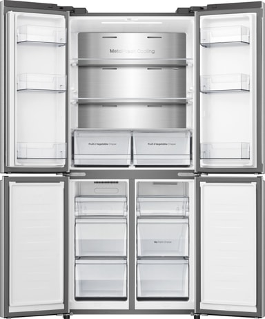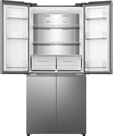 Jääkaapissa ja pakastimessa on runsaasti tilaa kaikentyyppisille ja ‑muotoisille elintarvikkeille. Neljä ovea avautuu pitkälle, joten näet sisällön kätevästi yhdellä silmäyksellä.