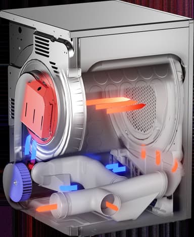 Helposti puhdistuva ovisuodatin. Tehokas nukkasuodatin estää nukan ja pölyn siirtymisen herkkään ja vaikeasti puhdistettavaan kondensaattoriin ja tuulettimeen. Voit puhdistaa sen helposti juoksevan veden alla ja pyyhkiä käsin. Bajonetti- ja ruuvikiinnitys. Muistutus näytöllä, kun on aika puhdistaa suodatin.Drying with sense (PROF)