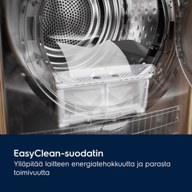 EasyClean-suodatin on helppo puhdistaa. Se pitää koneen hyvässä kunnossa, mikä auttaa energiatehokkuuden säilyttämisessä.