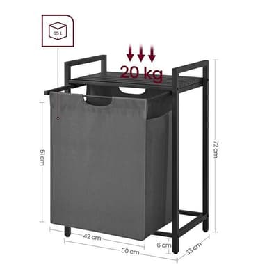 Ulosvedettävä pyykkikori ja irrotettava pyykkipussi 65L Svart/GreyTutustu ominaisuuksiin