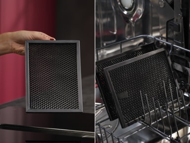 Mukana toimitettava standardimallinen OdourClean-aktiivihiilisuodatin vähentää ruoanvalmistuksesta syntyviä hajuja. Se on helppo vaihtaa liesituulettimen toimivuuden ja raikkaamman keittiön varmistamiseksi. Tilalle voi vaihtaa myös OdourClean Plus -suodattimen.*