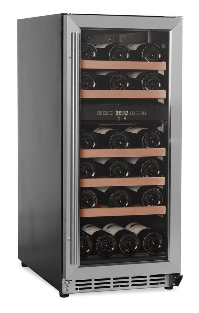 Tämä viinikaappi tarjoaa kunnon vastinetta rahalle! Sisäänrakennettava viinikaappi, jossa on tilaa 29 pullolle, kompressiojäähdytys ja tärinänvaimennusjärjestelmä. Viinikaapissa on tyylikäs muotoilu, viisi ulosvedettävää puuhyllyä ja kaksi säädettävää lämpötila-aluetta. Lisäksi siinä on 800 millimetriä korkea ovi, jonka ansiosta se sopii täydellisesti esimerkiksi IKEA-keittiöön.