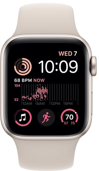 Apple Watch SE 2nd Gen -älykellon avulla voit elää aktiivisemmin ja olla valmis tulevaan. Pysy yhteydessä muhin, seuraa kuntoilua, näe mihin olet menossa ja mittaa sykettäsi kaikkina päivän aikoina.Tutustu ominaisuuksiin
