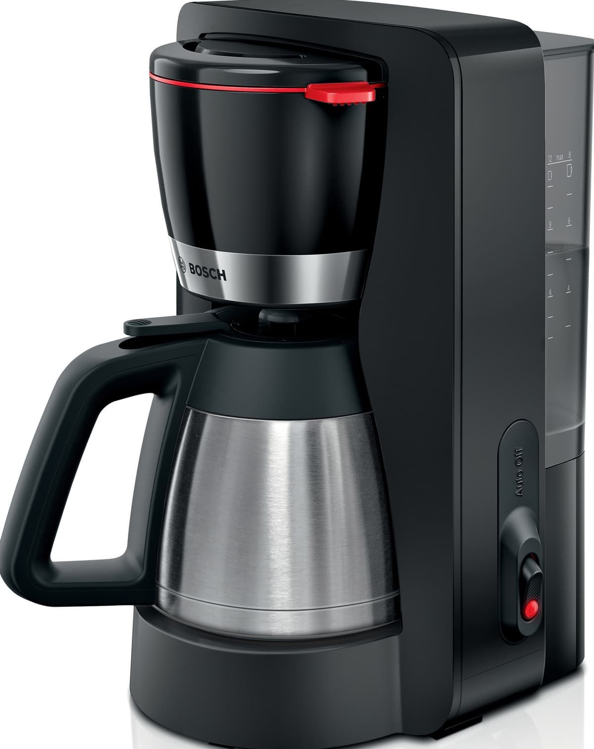 Nauti täydellisesti valmistetun suodatinkahvin mausta ja aromista Bosch MyMoment -kahvinkeittimen ja sen 850-1000 W tehoalueen, 1,1 litran irrotettavan vesisäiliön, 1 litran termoskannun sekä DripStop- ja auto-off-toimintojen avulla.Tutustu ominaisuuksiin