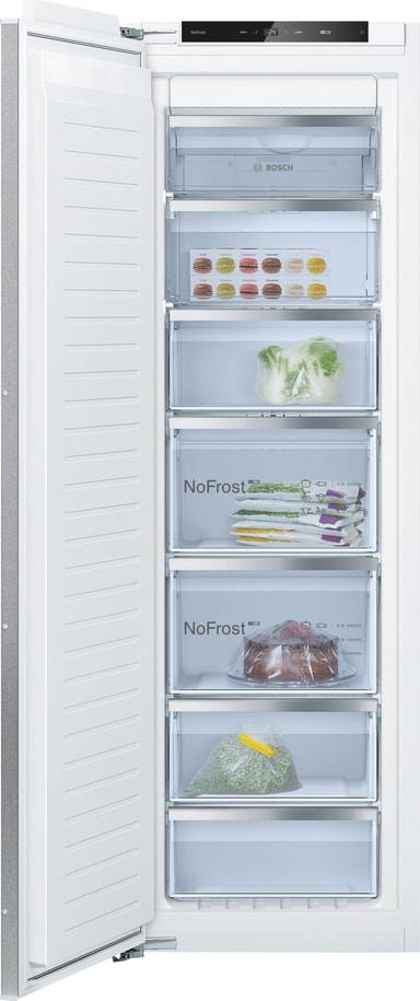 Boschin GIN81ACE0 sisäänrakennettu pakastin tarjoaa tilavan 212L NoFrost-sisäosan, nopean pakastustoiminnon ja hiljaisen 35 dB:n toiminnan sekä tyylikkään pehmeästi sulkeutuvan oven.Tutustu ominaisuuksiin