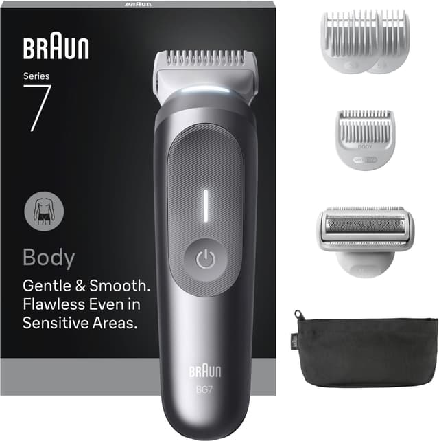 Lisävarusteet: Braun Series 7 -vartalotrimmerin mukana toimitetaan kaikki, mitä tarvitset tarkkaan ja mukavaan käyttöön. Lisävarusteisiin kuuluu kolme kampaa eri pituuksille ja lisälaite yksityiskohtaiseen trimmaukseen. Kätevä pussi pitää kaiken järjestyksessä, ja mukana tuleva puhdistusharja takaa helpon huollon.