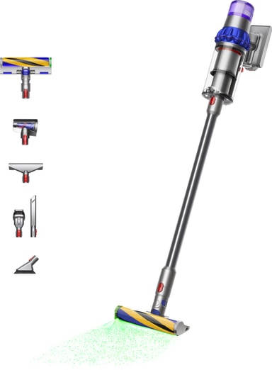 Johdoton Dyson V15 Detect Fluffy -varsi-imuri 240 AW imuteholla, piezo-anturilla, LCD-näytöllä, jopa 60 minuutin käyttöajalla, moniasteisella suodatuksella ja kolmella tehoasetuksella tarjoaa helpon ja älykkään imuroinnin.Tutustu ominaisuuksiin