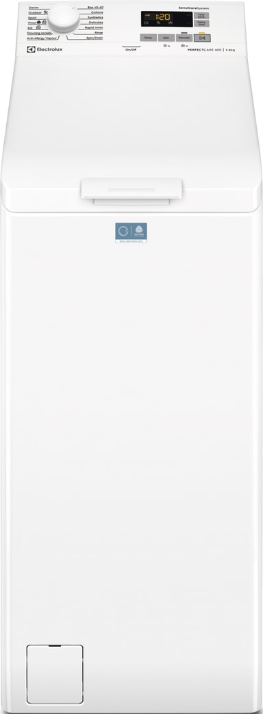 Päältä täytettävä PerfectCare 600 pesukone SensiCare-järjestelmällä säätää ohjelman keston täyttömäärän mukaan. Se käyttää oikean määrän vettä, aikaa ja energiaa täydellisen lopputuloksen saavuttamiseksi, oli täyttömäärä mikä tahansa. Vaatteet säilyvät uudenveroisina pitempään.