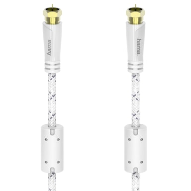 Liitä TV- tai satelliittivastaanotin antennipistorasiaan Hama 120dB koaksiaalikaapelilla. Kaapelissa on kaksi kullattua 24K F-pistoketta.Tutustu ominaisuuksiin
