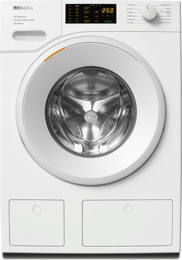 Miele WSB683 WCS 125 lootuksenvalkoinen pesukone tarjoaa huippuluokan pyykinhoidon SteamCare-höyryllä, TwinDos-annostelulla, Wi-Fi:llä ja 8 kg kapasiteetilla, varmistaen tehokkaan, hiljaisen ja mukautetun pesun kaikille tekstiileille.Tutustu ominaisuuksiin