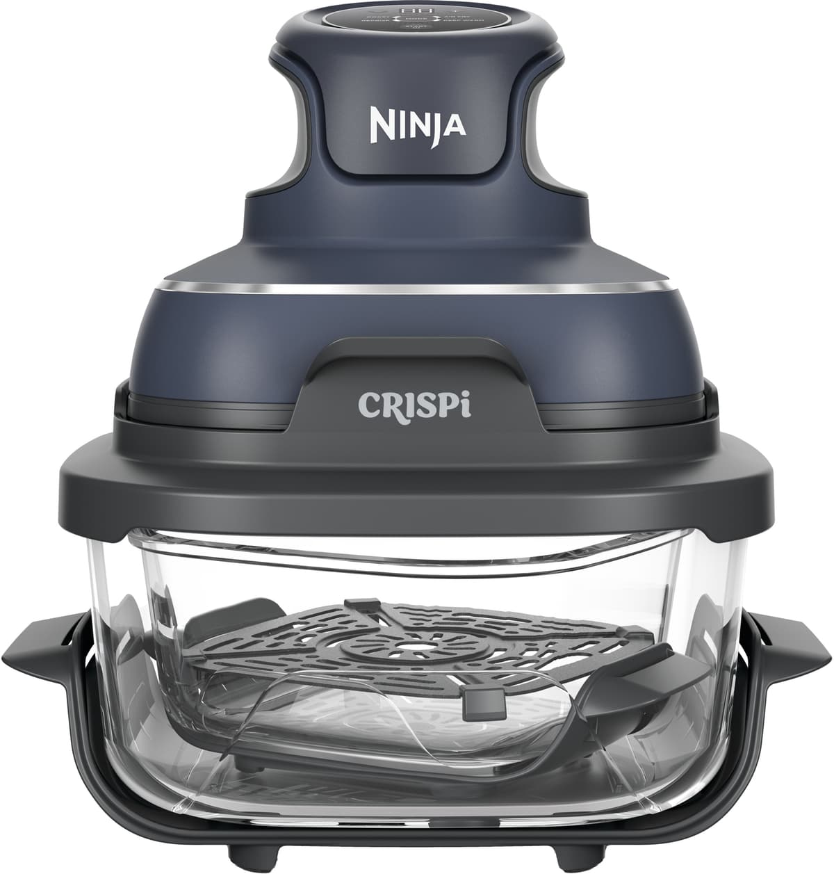 1700 W Ninja Crispi -kiertoilmakypsennin sisältää 2 lasiastiaa (1,4 l ja 3,8 l). Siinä on 4 keittotilaa, mukaanlukien kiertoilmakypsennys, paistaminen, lämmittäminen ja lämpimänäpito.Tutustu ominaisuuksiin