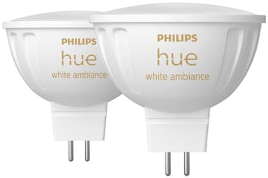 Philips Hue White Ambiance MR16 -LED-lamppu täyttää kotisi valkoisen eri sävyillä. Älykäs lamppu on himmennettävä ja se tarjoaa sulavan hallinnan Philips Hue Bluetooth -sovelluksen, äänen tai Hue Bridge -tukiaseman avulla.Tutustu ominaisuuksiin