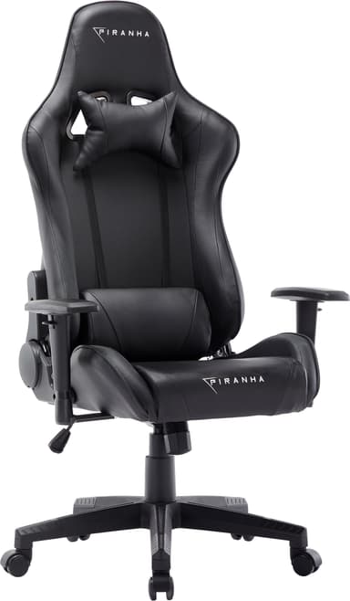 Piranha Bite -pelituoli on erittäin mukava ja siinä on vahvistettu nailonjalusta, kallistusmekanismi, säädettävä päätuki, tekonahkainen rei’itetty verhoilu sekä mukavat lanne- ja niskatyynyt.Tutustu ominaisuuksiin