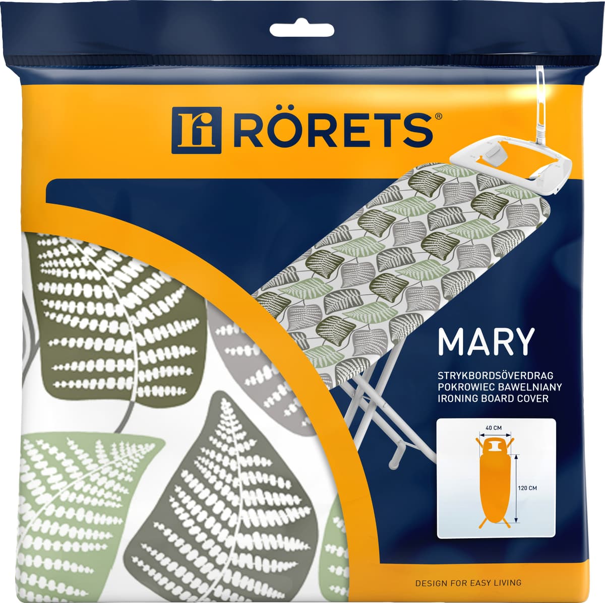 Rörets Mary silityslaudan päällinen sopii täydellisesti silityslautoihin, joiden enimmäiskoko on 40x120 cm. Kiinnitys on helppoa pidikkeiden ja nauhan ansiosta.Tutustu ominaisuuksiin