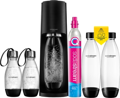 SodaStream Terra Gigapack -hiilihapotuslaitteellavoit nauttia helposta virvoitusjuomien valmistuksesta menemättä kauppaan. Auta suojelemaan ympäristöä mukana tulevienviiden uudelleenkäytettävän ja astianpesukoneen kestävän pullon avulla. Kukin pullo korvaa jopa 1 000 muovipulloa, jotka heitetään pois. Tyylikäs muotoilu, modernit ominaisuudet ja kaikki, mitä tarvitset virvoitusjuomaasi, löydät tästä paketista.
