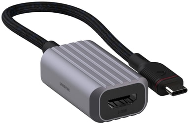Unysink USB-C–HDMI -adapteri mahdollistaa kannettavan tietokoneen tai muiden laitteiden liittämisen ulkoiseen näyttöön jopa 4K Ultra HD -resoluutiolla ja 60 Hz taajuudella. Se tulee kestävässä alumiinirakenteessa, jossa on vahvistettu kaapeli.