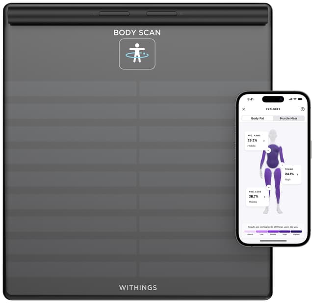 Modernilla muotoilulla varustettu Withings Body Scan -henkilövaaka on älykäs laite, joka antaa tarkan mittauksen painostasi Segmental Body Composition -toiminnon ansiosta. Se myös seuraa painonpudotusmatkaasi itse laitteen sekä älypuhelinsovelluksen kautta, johon kaikki edistyksesi on synkronoitu.