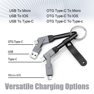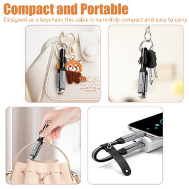Kompakti ja kannettava: Tämä avaimenperäksi suunniteltu kaapeli on uskomattoman kompakti ja helppo kuljettaa mukana. Se vie vähän tilaa taskussasi tai laukussasi, joten sinulla on aina lataus- ja tiedonsiirtoratkaisu käsillä.