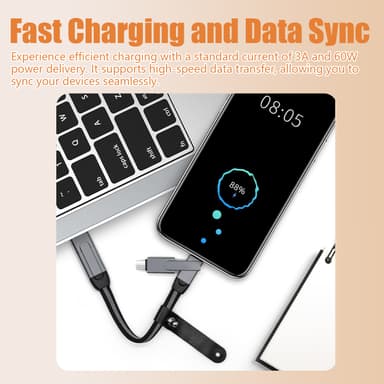 Pikalataus ja tiedonsynkronointi: Koe tehokas lataus 3 A:n vakiovirralla ja 60 W:n tehonsiirrolla. Tämä kaapeli varmistaa, että laitteesi latautuvat nopeasti ja turvallisesti. Lisäksi se tukee nopeaa tiedonsiirtoa, jolloin voit synkronoida laitteesi saumattomasti.