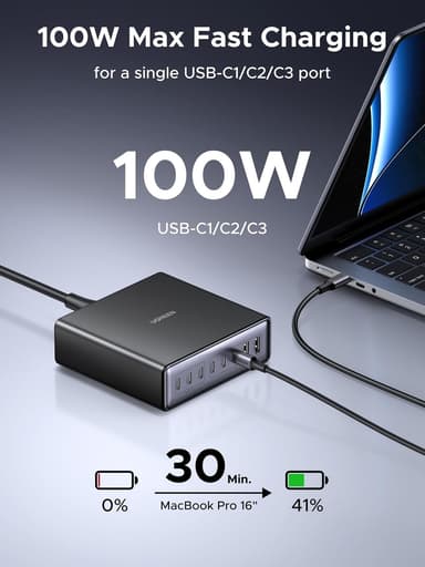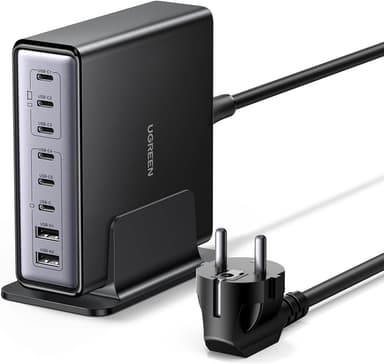 Tämä tuote on tehokas UGREEN Nexode 200W GaN USB-C -lataustasema, jossa on 8 porttia, suunniteltu lataamaan useita laitteita samanaikaisesti—nopeasti, tehokkaasti ja turvallisesti. Kokonaisteho 200W, edistynyt GaN-tekniikka ja älykäs tehonjakelu mahdollistavat kannettavien tietokoneiden (esim. MacBook Pro, Dell XPS, HP Spectre) sekä älypuhelinten, tablettien, älykellojen ja kuulokkeiden lataamisen. Kompakti muotoilu, jossa on 6 USB-C- ja 2 USB-A-porttia, sopii niin työpöydälle kuin kotiinkin, ja GaN-tekniikka pitää latauksen viileänä ja energiatehokkaana.