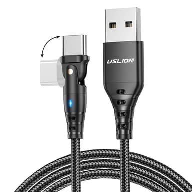 • USB-A - USB-C -latauskaapeli 2 m, 180 astetta kääntyvä kulmapää, 3A