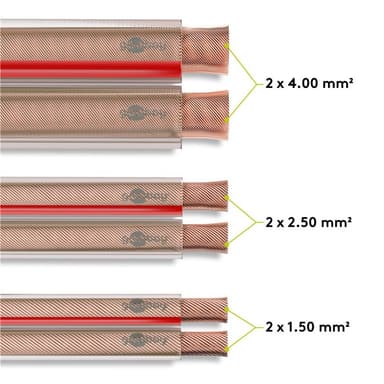 Kaiutinkaapeli, jossa on korkealaatuinen, säikeellinen kuparilanka (OFC: hapeton kupari), joka takaa erittäin hyvät siirto-ominaisuudet esimerkiksi hifi-järjestelmien ja kaiuttimien välillä