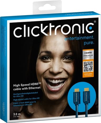Clicktronic 4K -kaapeli virallisella HDMI™ Premium -sertifioinnilla takaa parhaan laadun.