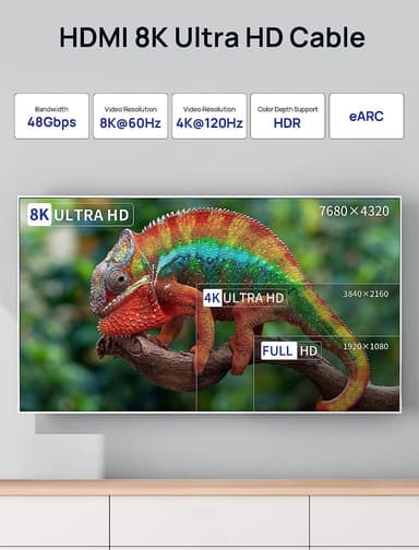Tämä Nördic HDMI-kaapeli tukee uusimpia HDMI-spesifikaatioita, mukaan lukien resoluutio jopa 8K 60Hz, 4K 120Hz, kaistanleveys jopa 48Gbps, tuki 100Mbit/s Ethernetille, Dynamic HDR, tuki jopa 32 erilliselle äänikanavalle kustakin.Tutustu ominaisuuksiin