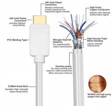 NÖRDIC CERTIFIED CABLE 1.5m HDMI 2.1 Ultra High Speed ??8K 60Hz 4K 120Hz 48Gbps Dynamic HDR eARC Game Mode VRR Dolby ATMOS nailonpunottu kullattuTutustu ominaisuuksiin