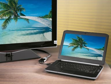Hama HDMI - VGA -muuntimen avulla voit yhdistää HDMI-liitäntäisen tietokoneen näytön tai projektorin VGA-liitäntään. Muunnin sirtää kuvan ja äänen jopa 1920x1080 Full HD -resoluutiolla.Tutustu ominaisuuksiin