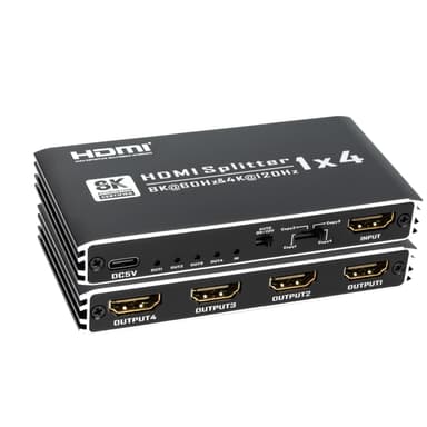 Tämä splitter mahdollistaa yhden HDMI-lähteen jakamisen jopa neljälle näytölle samanaikaisesti, tukien täysimääräisesti 8K@60Hz ja 4K@120Hz. HDMI 2.1:n, HDR10:n, HDCP 2.3:n ja edistyneiden ääniformaattien tuki takaa huippuluokan suorituskyvyn ammattilaisille ja kotikäyttöön. EDID-asetukset varmistavat oikean kommunikaation jokaisen näytön kanssa, ja kestävä alumiinirunko takaa luotettavuuden.Tekniset tiedot