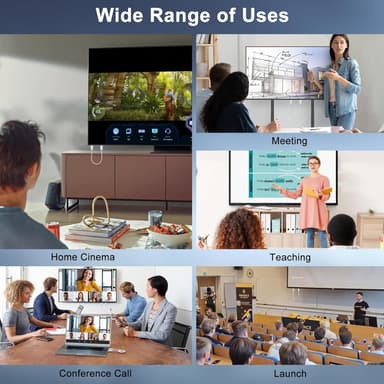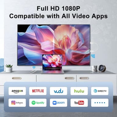 Käytitpä sitten kannettavaa tietokonetta, kameraa tai TV-boksia, voit siirtää sisältöä projektoriin, televisioon tai näyttöön Full HD -laadulla (1080p@60Hz) ja minimiviiveellä (<0>,1 s). Kantama jopa 30 m vakaalla 2.4G/5G-yhteydellä, jopa seinien läpi. Tekniset tiedot