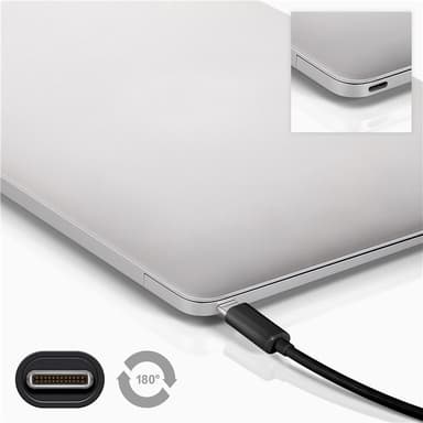 USB-kaapelin avulla voit liittää tavallisia USB-C-laitteita, synkronoida ja siirtää tietoja jopa 5 Gbps:n nopeudella. Elokuvia, musiikkia, videoita ja tiedostoja voidaan siirtää maksimitiedonsiirtonopeudella 5 Gbit/s. USB-C ™ -liitintä voidaan käyttää molemmin puolin, ja sen lähtövirta on 3 A (DC) ja lähtöjännite 20 V jännitteestä.