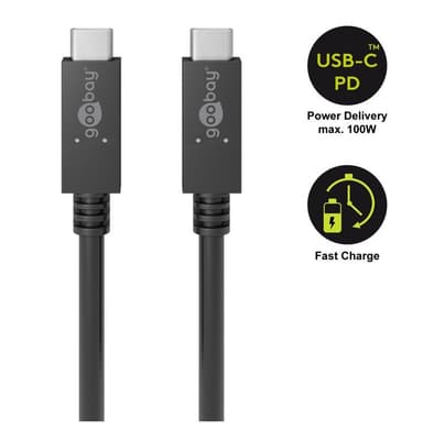 • Goobay USB-C™ -pikalatauskaapeli supernopeaan lataukseen Power Delivery -toiminnon ansiosta, jonka maksimivirta on 5 A / 100 W / 20 V.